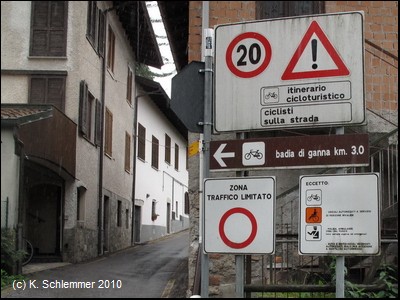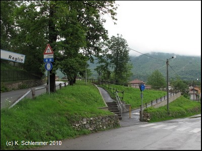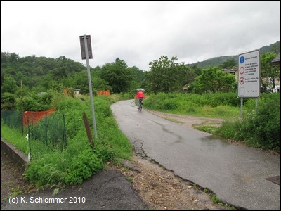 Wir erreichen die SS233 (Via Grumello), die überquert werden muss. "Radfahrer absteigen" heißt es - frei übersetzt!