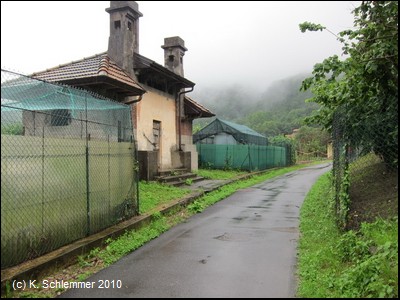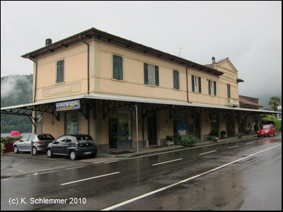 Gleich dahinter der alte Bahnhof von Lavena - die Inschrift ist noch zu erkennen.