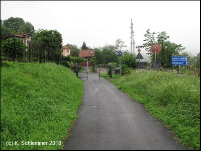 Richtung Ghirla verläuft der Radweg nun wieder auf der alten Bahnstrecke. Auf der Gegenseite (Richtung Marchirolo) ist die Trasse nicht ausgebaut.