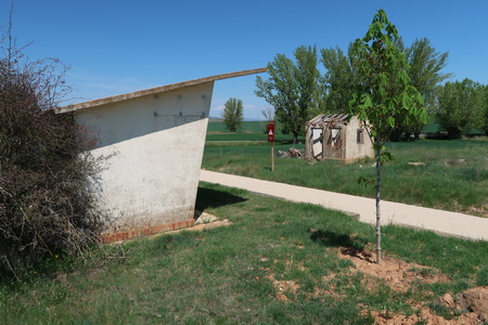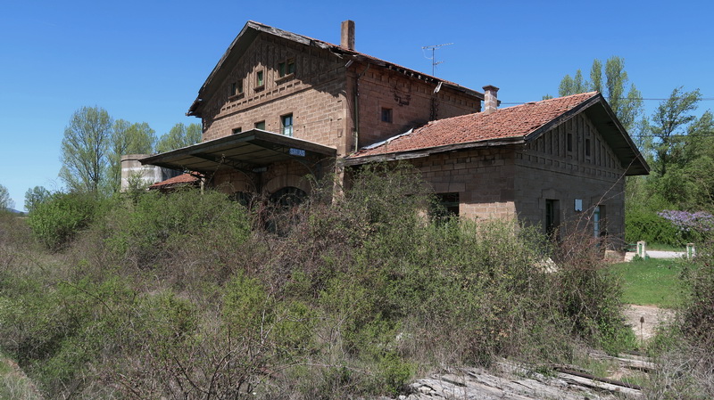 Rastplatz bei Cabrejas del Campo. Und weiter in der einsamen Landschaft passiert man die Ruinen der Bahnhofsgebäude von Cabrejas.