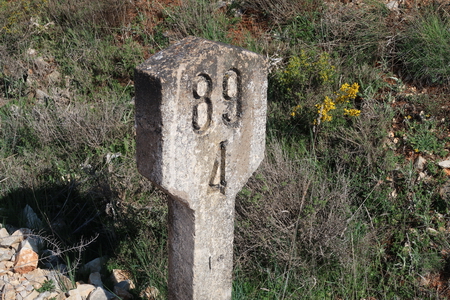 Die Wegweiser sind fertig, hier heißt der Radweg nicht Via Verde sondern Camino Natural Santander.Mediterráneo. Die Original Kilometrierung ist gut erhalten.
