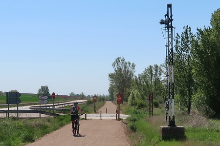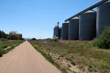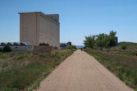 Vor uns liegt schon das Bahnhofagelände der Orte Albocabe, Gómara und Almenar mit den riesigen Speichern.