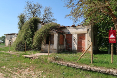 Eine schier endlose Gerade erwartet uns, die Felder um uns herum sind im Mai noch grün. Der Radweg verläuft hier parallel zur Nationalstraße 234. Das alte Signal hat einen neuen Anstrich erhalten.