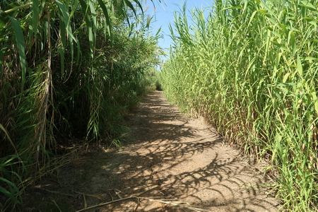 Riesige Eukalyptusbäume flankieren den Radweg und ragen in die Fahrbahn. Dann wieder ein Dickicht aus Schilf.
