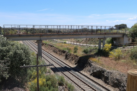 Die Brücke über die aktive Bahnstrecke wurde erneuert. Das war wohl auch nötig, denn die "ältere Schwester" ist schon recht marode.