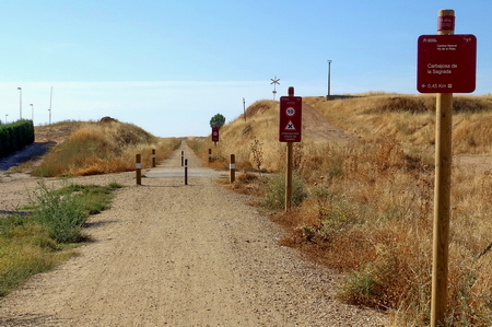 Wir starten an der großen Brücke über den Río Tormes - meist als Puente Romano bezeichnet. Der Fluss macht einen großen Bogen um das Gebirge herum, wir werden in Alba de Tormes wieder auf ihn treffen. Wegweiser zur Via Verde haben wir nicht entdeckt. Ein grüner Radweg führt am Flussufer entlang. Bereits nach knapp einem Kilometer in südwestlicher Richtung, an der Brücke Principe de Asturias (Kreisverkehr) muss man die Straße überqueren und der Straße Joaquin- Rodrigo folgen. Nach dem nächsten Kreisverkehr biegt man in die Calle Newton nach links ab und erreicht nach 350 m geradeaus den Beginn der Via Verde auf der Bahntrasse.