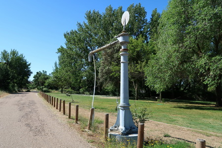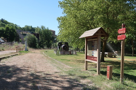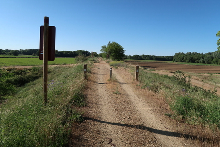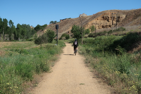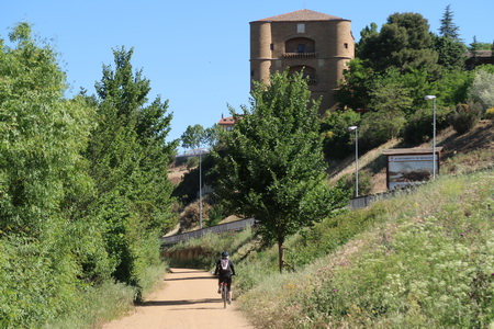 Abfahrt am Bahnhof von Benavente am westlichen Stadtrand im Park am Fluss bei Kilometer 8 des Radwegs.