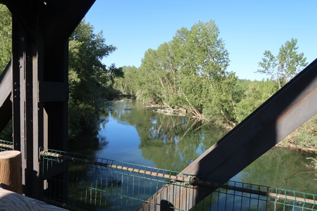 Brücke über einen Kanal am Río Esla, dann erreicht man den Fluss selbst.