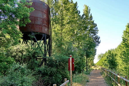 Die kurze Vìa Verde beginnt 8 km südlich des alten Bahnhofs von Benavente in dem kleinen Dorf Barcial del Barco (ca, 250 Einwohner) und folgt zunächst dem Río Esla Richtung Norden. Dann im Tal des Río Órbigo durch die Auenlandschaft erreicht man Benavente. Die Stadt hat eine lange Geschichte und ist heute das Zentrum für die einheimische Landwirtschaft. Schon von weitem fällt der Blick auf den Turm der einstigen Burg Castillo de la Mota , genannt Torre de Caracol (Schneckenturm), erbaut auf den Ruinen der im 19. Jahrhundert von französchen Truppen zerstörten Burganlage.
