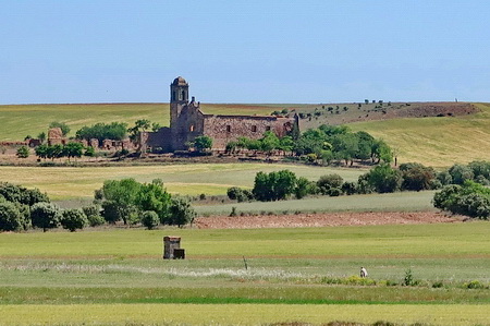 Weiter auf der Trasse, folgt man zunächst an einem Arm des Río Órbigo entlang, dann durch Steineichenwälder. Westlich erstrecken sich weite Felder, östlich des Radwegs liegt die einsame Dehesa de Mosteruelo. Ein seltsames Bild bietet sich in Villabrázaro, wo zahlreiche Lüftungskamine der unterirdischen Bodegas aus der Landschaft ragen. Inmitten der kargen Landschaft erheben sich die Ruinen des Santuario de Nuestra Señora del Valle (bei San Román), ein ehemaliges Kloster, das in Folge der "Kirchlichen Exklaustraktion von 1835" aufgegeben wurde.