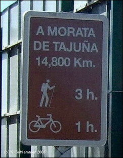 Vía Verde-Umleitungsschild an der Avenida de Madrid/Ejército (2008). Noch 14,8 km nach Morata de Tajuña.
