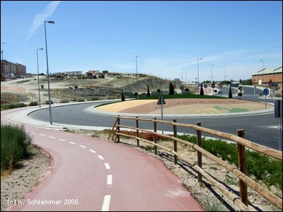 Am Ortseingang von Morata de Tajuña endet der neue Radwegeabschnitt. Die Beschilderung führt durch den Ort.