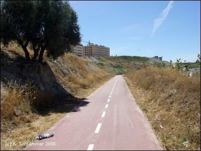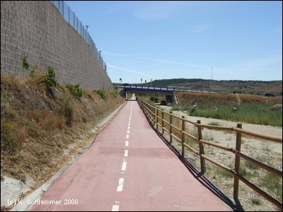 Geradeaus bergauf und unter der "Autovia del Este" A3 hindurch