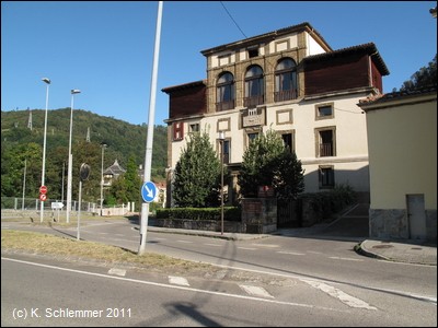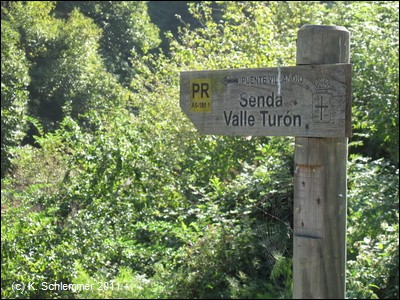 Etwas weiter nördlich, bei der Kreuzung am Hotel Palacio Figaredo, ist dann ein Radweg beschildert, und man findet eine Infotafel über die regionalen Wege am Río Turón.