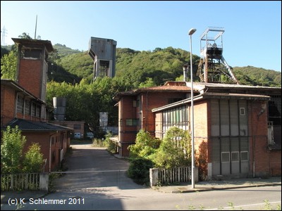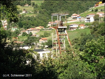 Die Grubenanlage Figaredo (Pozo Figaredo) ist längst außer Betrieb. Weiter aufwärts taucht eine alte "Depuradora" (Kohlereinigungsanlage) auf.