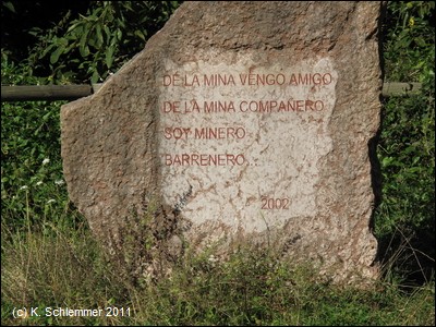 ....doch dann geht es wieder eine steile Rampe hinab ins Tal. An einem alten Brunnen steigt der Weg wieder kräftig bergauf. Ein Gedenkstein an die Mineros steht am Wegrand.