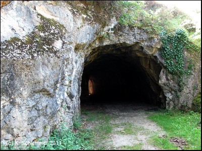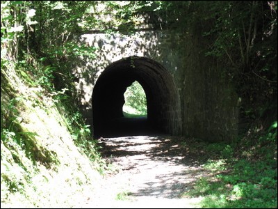 Leider ist das Bauwerk schon stark überwuchert, so dass man nicht ins Tal hinab schauen kann. Hinter der Brücke taucht der erste Tunnel auf: Bielsa, 55 m kurz.