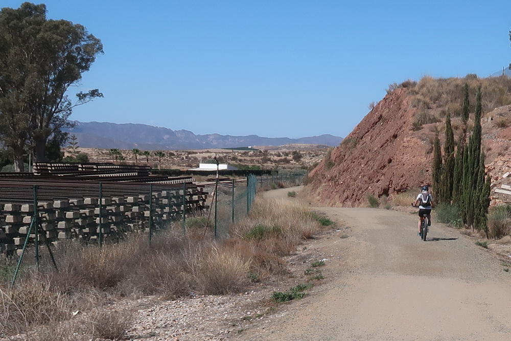 Dieser Radweg gehört zur Via Verde del Valle del Almanzora: Baúl - Arboleas (101 km). Leider fehlt noch die Verbindung von ca. 18 km Länge zwischen Huercal-Overa und Arboleas. Wir beginnen deshalb die Fahrt im Ort Almendricos und fahren Richtung Westen, da das Ende der jetzigen Via Verde an einem Zaun oberhalb der Autobahn endet (Hier soll bald ein Steg gebaut werden). Wenn die Lücke von ca. 11 km geschlossen ist, kann man die gesamte Strecke bis nach Baza und Baúl befahren (etwa136 km).