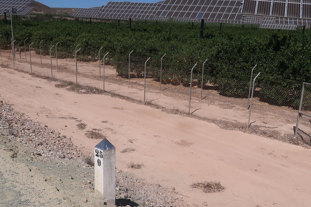 Dann, plötzlich und unvermittelt ist die Fahrt auf der Trasse zuende: Kilometer 3 des Radwegs nach Arboleas, das Ende an der Autobahn. Hier hat man die Bahntrasse abgetragen, um für den Autoverkehr Platz zu schaffen. Die Radler hat man vergessen, oder?