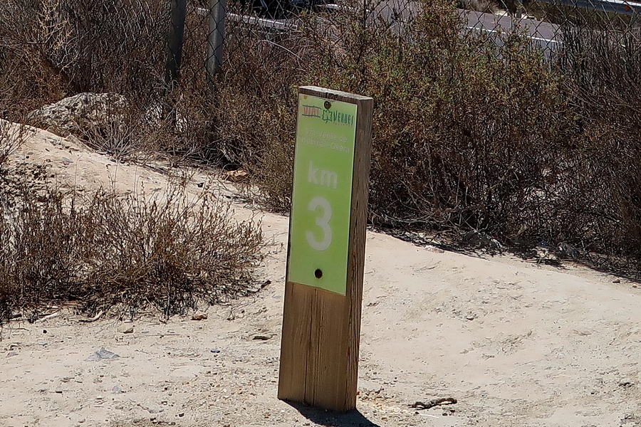 Auch die Schilder des Vía Verde sind in die Jahre gekommen. Kilometer 13 kann man gerade noch lesen.
