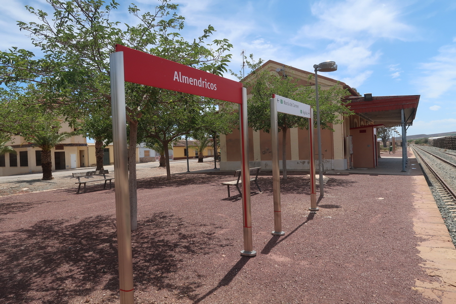 In Almendricos kann man am Bahnhof parken. 2024 waren umfangreiche Gleisarbeiten im Gange, um eine moderne Zugverbindung zwischen Murcia und Lorca zur Mittelmeerküste wieder herzustellen. Noch endet der Radweg 2 km hinter Huercal-Overa, aber der Bahnhof im Ort ist renoviert und bewirtschaftet.