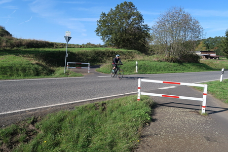 Rechts halten und der Beschilderung folgen. Die gesamte Strecke ist asphaltiert. In flotter Fahrt geht es abwärts durch die Felder. Nach dem Ort Völzberg wird es etwas flacher- Vorsicht, Rücksicht nehmen auf Traktoren.