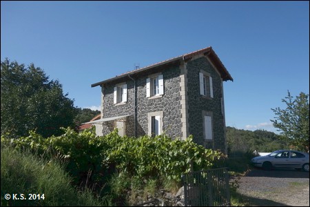 Die D38 wird überquert, abseits des Radwegs an der Straße durch den Ort befindet sich der ehemalige Bahnhof Coubon - Volhac. Der Radweg führt an der Stützmauer entlang.