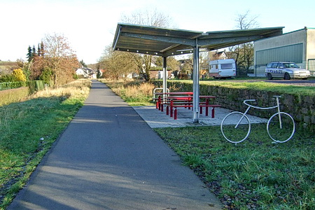 Die Ruine des alten Bahnhofs auf dem Gelände des Sägewerks wurde abgerissen und der neue Wegeabschnitt asphaltiert. Nach jahrelangem Warten eine wesentliche Verbesserung für die Radler.