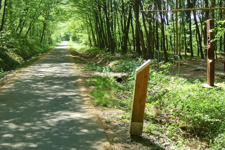 An der Halbsperre beginnt wieder der Radweg auf der Trasse, es geht Richtung Hirzenhain.
