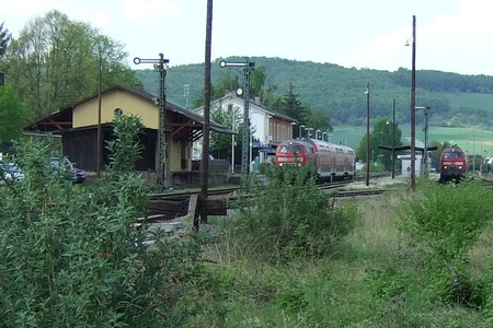 Da hilft nichts, auch in Glauberg ist der Zug schon weg. Gut, dass im restaurierten Bahnhof ein Biergarten entstanden ist.