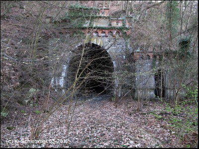 Der Gensbergtunnel (Nordportal) liegt versteckt im Gestrüpp, leider wurde er nicht in den Radweg einbezogen. Das Südportal liegt unterhalb der Weilstraße.