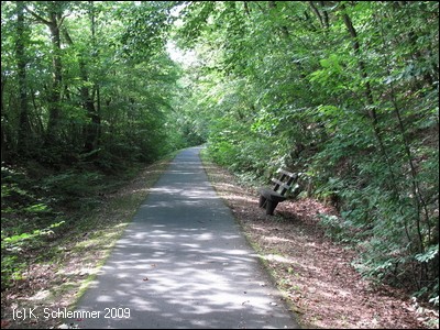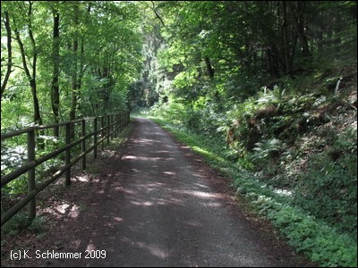 Durch das Wiesbachtal folgt die Strecke der alten Bahnlinie.