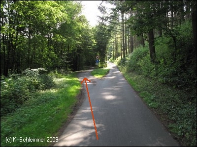 Nach dem Abzweig Mönstadt und hinter der Kläranlage biegt der Weg ab in den Wald.