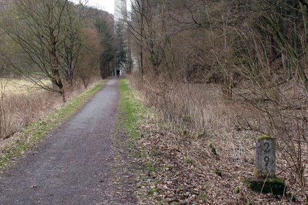Der Abschnitt der Bahnstrecke Herborn–Montabaur (Westerwaldquerbahn) zwischen Rennerod (Rheinland-Pfalz) und Herborn-Burg (Hessen) ist schon seit langem stillgelegt. Der Personenverkehr wurde auf den ersten Abschnitten schon im Jahre 1959 eingestellt, Güterverkehr fand in einzelnen Abschnitten noch bis 1985 statt. 1995 kam auch der Güterverkehr nach Rennerod aus westlicher Richtung (Westerburg) ganz zum Erliegen. Noch liegen die Gleise am Bahnhof Rennerod, aber die stillgelegte Bahntrasse, die in einem großen Bogen um die Stadt verläuft, ist erst 1,5 km östlich nahe der Kaserne, befahrbar. So muss man aus dem Ortskern etwa 80 Höhenmeter auf einem asphaltierten Weg hinauf strampeln.