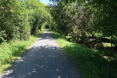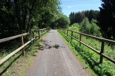 Im Bereich des Stausees von Driedorf (Rehbach) ist der Radweg ein Trampelpfad.
