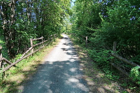 Der Weg biegt nach rechts ab, hier beginnt die Fahrt auf der Bahntrasse.